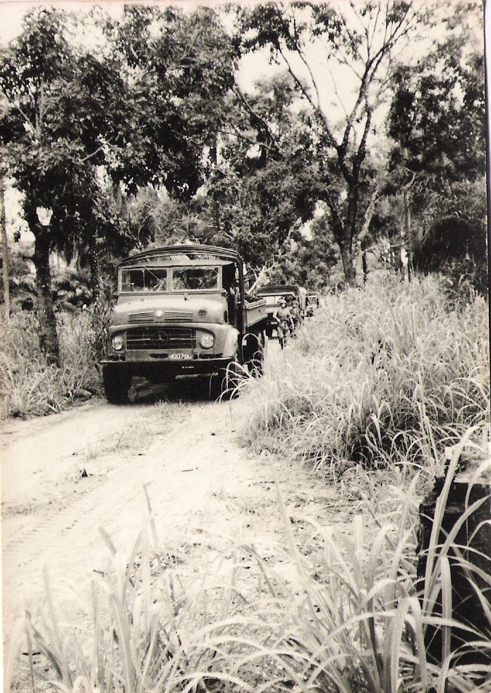 ![]() Almoço no campo durante a semana de IAO (Instrução de Adaptação Operacional) que antecedeu o embarque para a Guiné (Dezembro 1965). Da esq. para a direita: 2º Sarg. Modesto (à data Furriel)Furriéis Lançós, Mateus e Magalhães. Em pé: Furriel Veloso, Soldado clarim Allen. A seguir sentados: 2º Sarg. Marques, Furriéis Nelson e Pombo ![]() Monumento erigido em Bissorã de homenagem aos mortos em combate. Inaugurado no dia 26 de Fevereiro de 1967, data do 1º aniversário da chegada da CART 1525 a Bissorã Trabalho de autoria e execução da parte de escultura do 1º Cabo Radiotelegrafista José Hilário da Silva POrtela, com a colaboração de outros militares da Companhia ![]() 1º Cabo Atirador de Artilharia 1119/65, José António da SIlva Carveiro Morto em combate em 5 de Dezembro de 1966 na Operação Bissilão no Biambe, Guiné ![]() 1º Cabo Atirador de Artilharia 1135/65, Acácio Pestana Rafael Morto em combate em 5 de Dezembro de 1966 na Operação Bissilão no Biambe, Guiné ![]() Furriel Miliciano de Administração Militar, Armindo Vieira Veloso Morto em combate em 5 de Dezembro de 1966 na Operação Bissilão no Biambe, Guiné ![]() Unimog 404 da CART 1525 rebocando uma peça de Artilharia (obus 8,8) na estrada entre Bissorã e Olossato em Setembro de 1966 ![]() Peça pesada de Artilharia (obus 8,8) rebocada pelo unimog da CART 1525 na estrada do Olossato ![]() Coluna de viaturas da CART 1525 progredindo na estrada do Olossato ![]() Picagem da estrada do Olossato. À frente o soldado Silva e o ALferes Germano Silva em Setembro de 1966 ![]() Picagem da estrada do Olossato. À frente o soldado Manuel Carvalho |